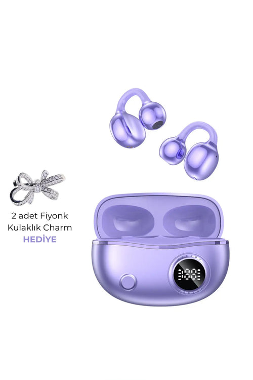 Fiyonk Charm Hediyeli Klips Tasarımlı Kablosuz Kulaklık