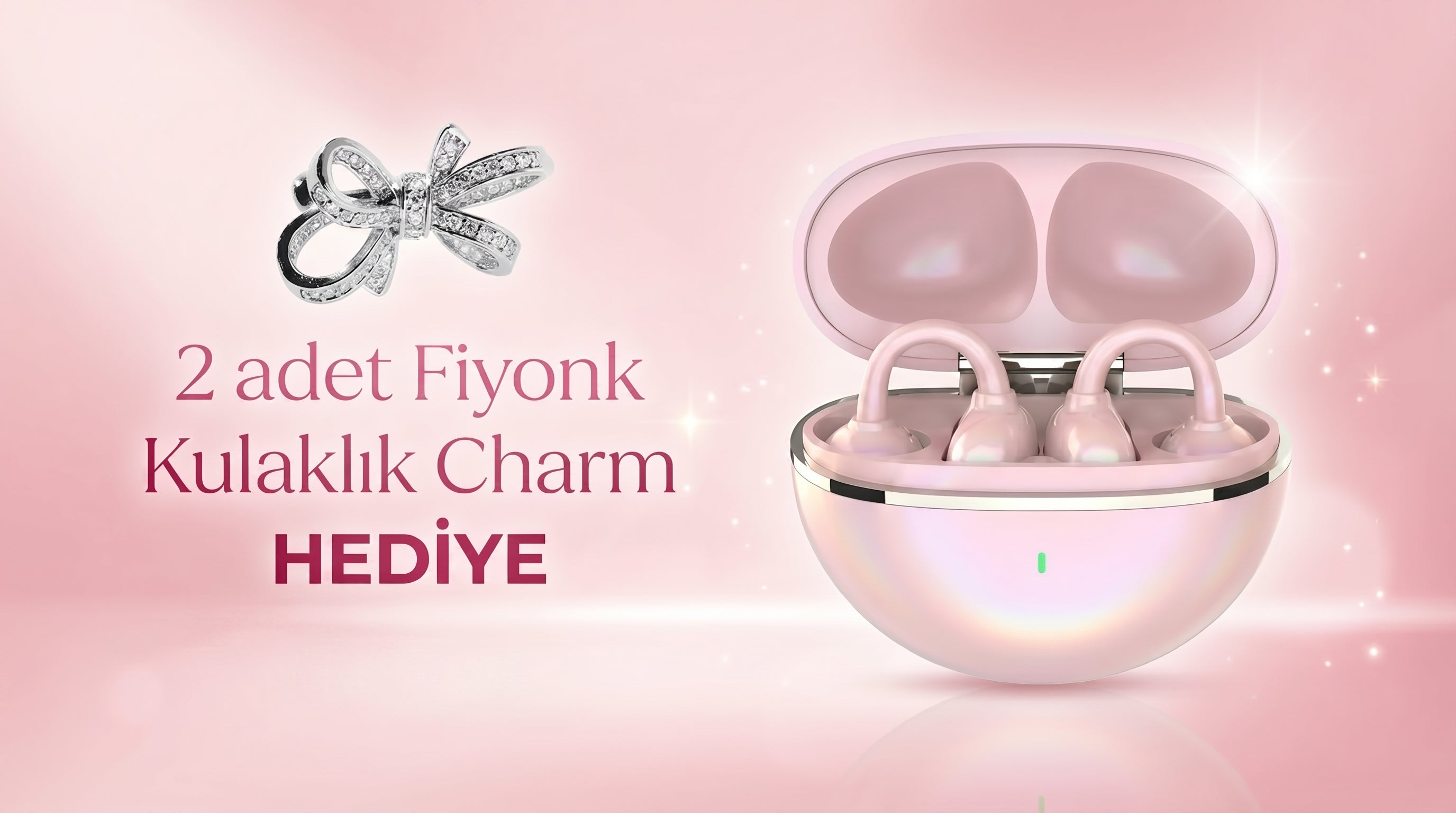 Fiyonk Charm Hediyeli Modern Klips Tasarımlı Kablosuz Kulaklık